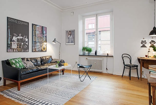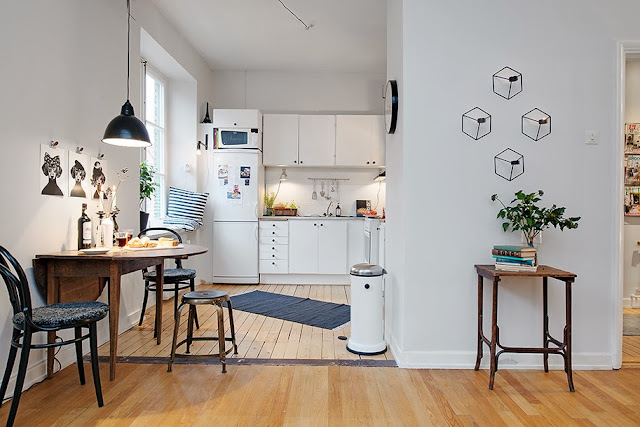 I hope you had a great weekend? It's all very well showing beautiful, spacious homes like this one and this one. But what about if you live in a teeny weeny one room / studio apartment (love that one)? Today's Swedish home is a fine example of how small can also be beautiful using a few clever space saving ideas.